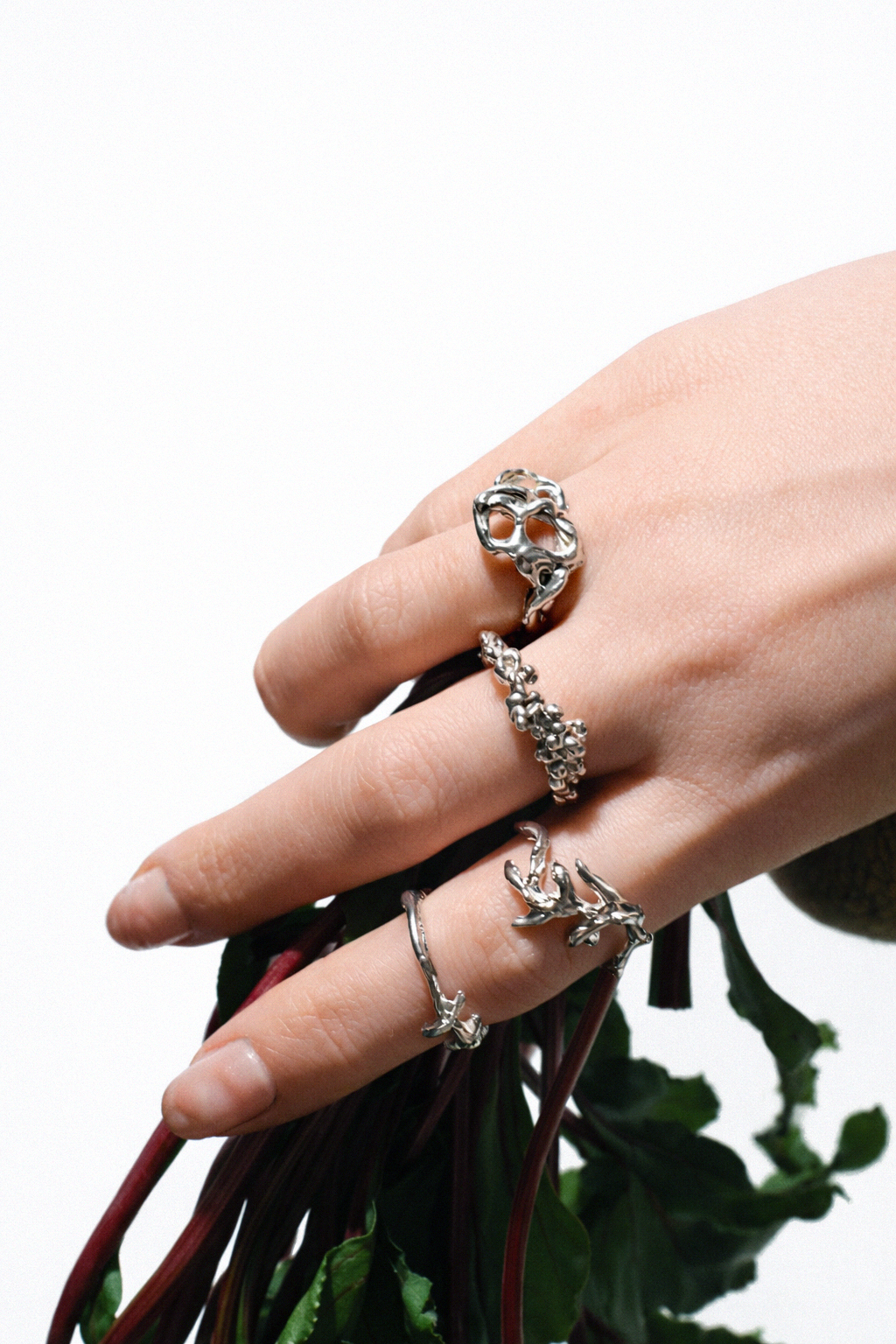 Etti Jewelry is built on a quiet fascination with erosion, decay, and natural imperfection. Each piece, whether it’s a sculptural silver ring or a delicate chain necklace, begins as a sketch, a wax carving or a raw idea shaped by material and instinct.