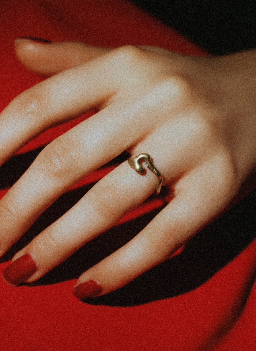 Elegant in its simplicity, this Yellow Bronze Wavy Ring flows gently around the finger with a soft, sculptural shape. Handcrafted with care, its subtle curves and warm golden tone give it a natural, effortless charm.